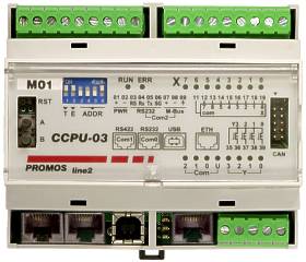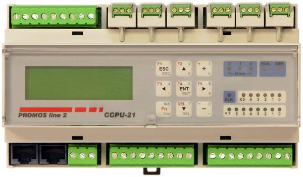 CCPU-21 je kompakt s ovládacím panelem a oproti centrálám CCPU-02/03 neobsahuje tlačítka A + B + RST. Viz